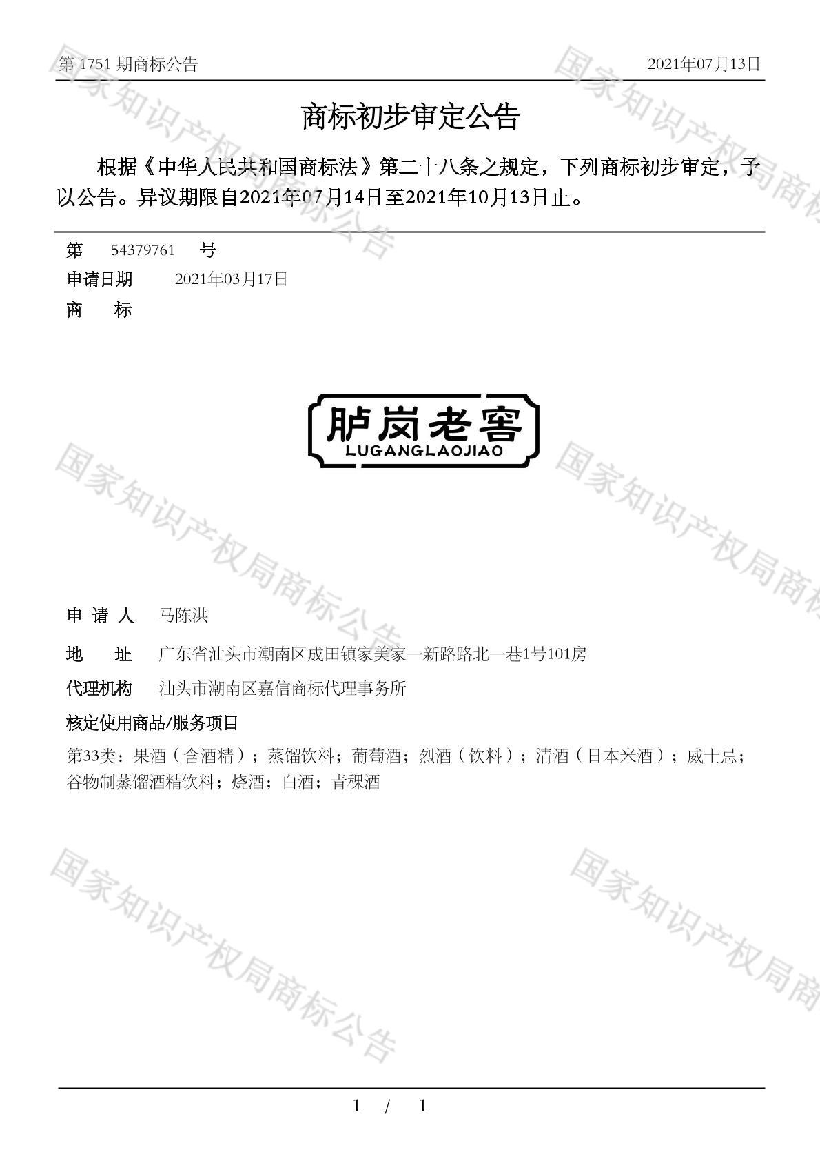 初审公告日期:2021-07-13