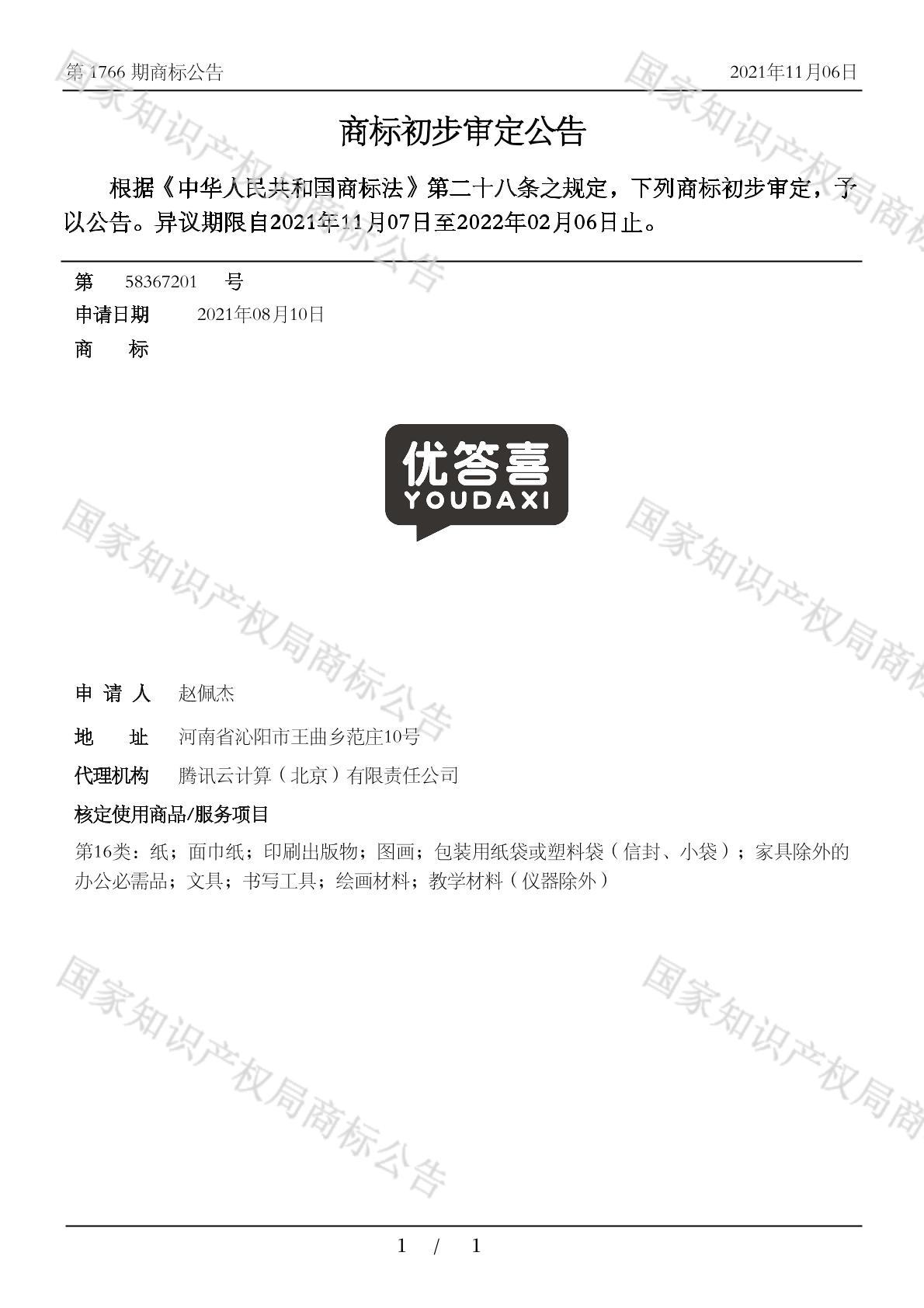 有效期限:2032-02-06 组合类型:中文注册号:58367201