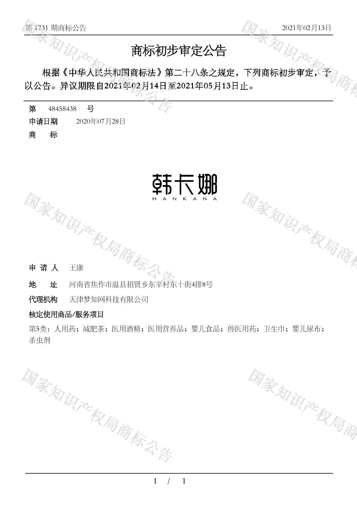 有效期限:2031-05-13 组合类型:中文注册号:48458438
