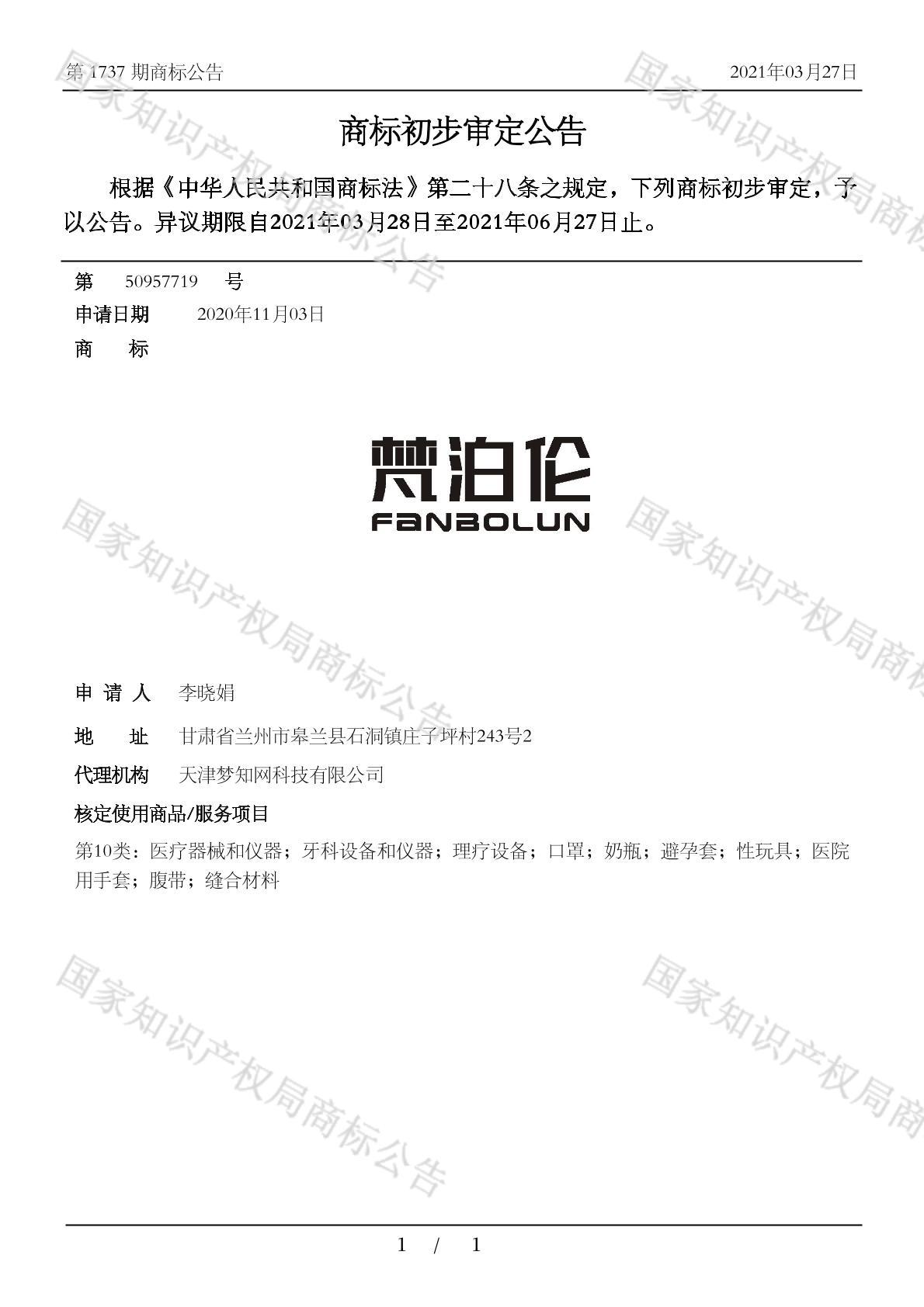 有效期限:2031-06-27 组合类型:中文注册号:50957719