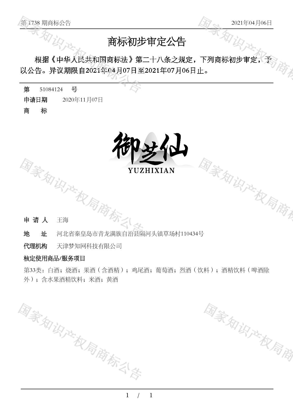 您当前位置:首页商标转让33类商标御芝仙