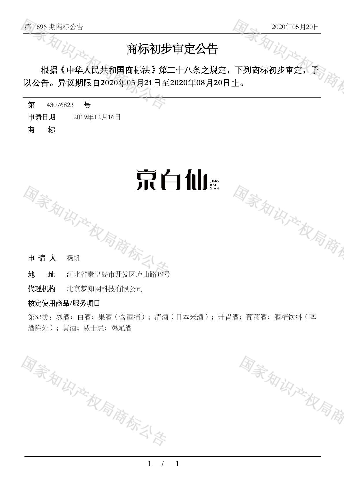 初审公告日期:2020-05-20