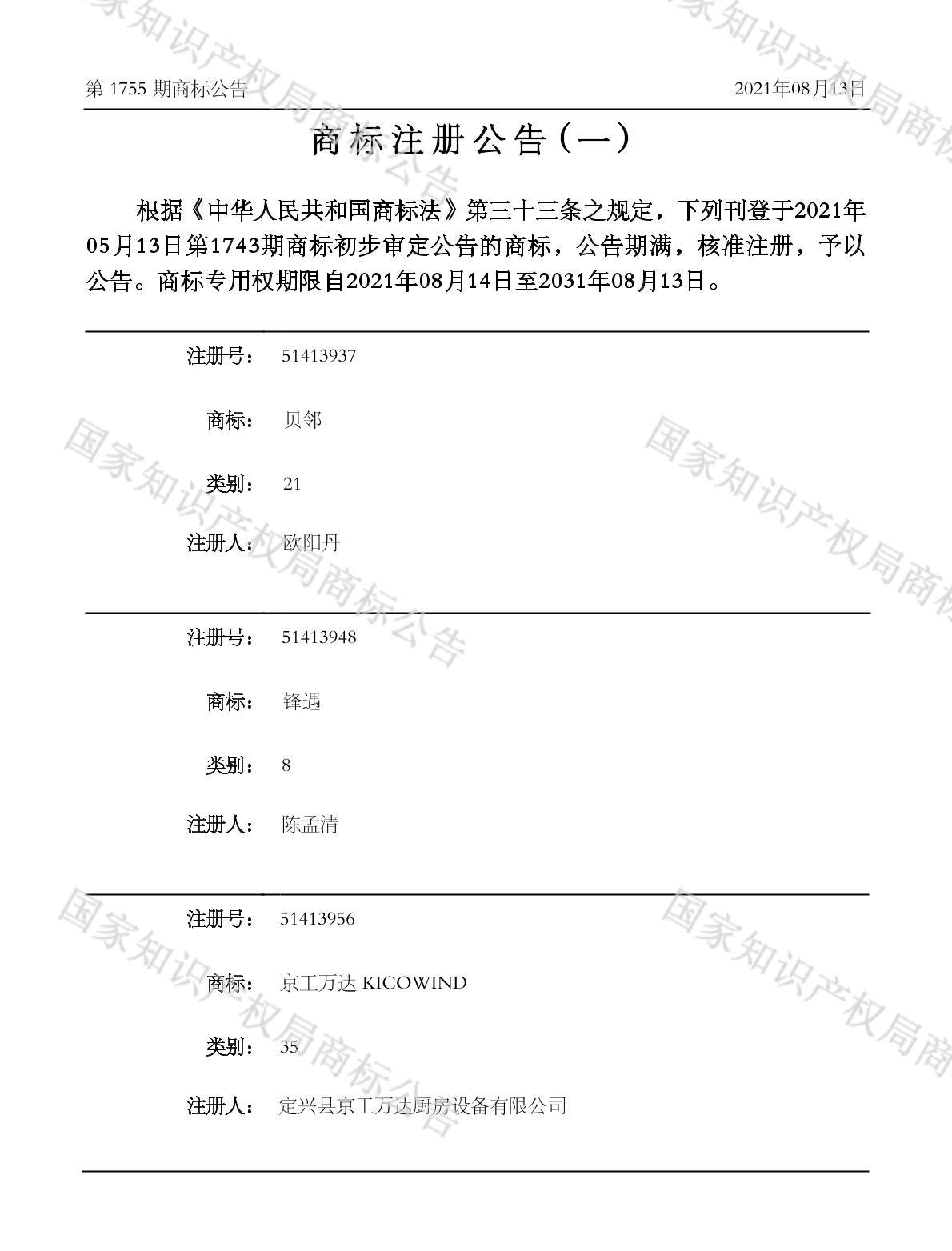 注册公告期号:1755