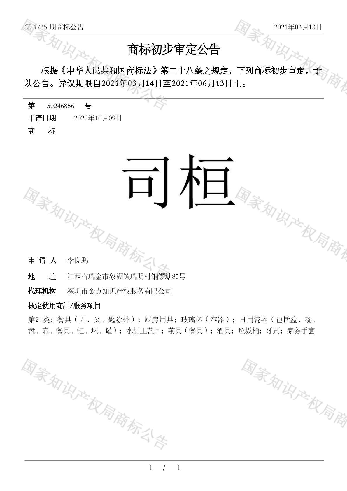 有效期限:2031-06-13 组合类型:中文注册号:50246856