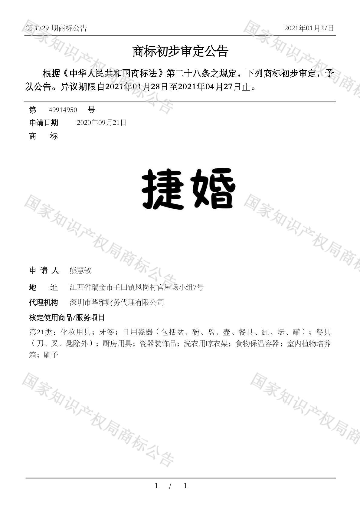 您当前位置:首页商标转让21类商标捷婚