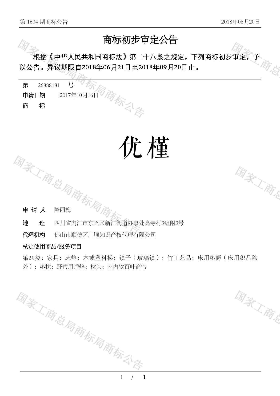 初审公告日期:2018-06-20