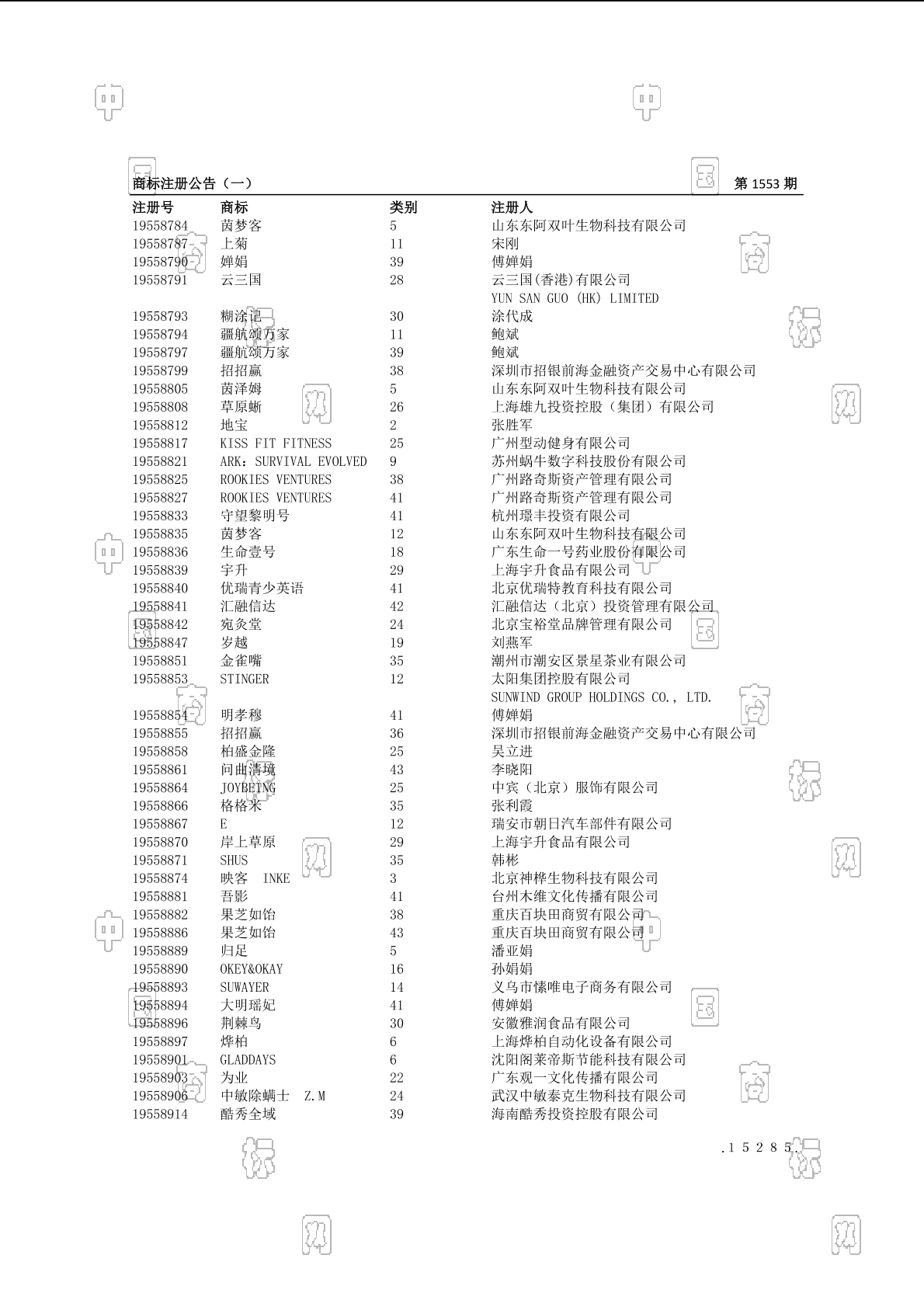 注册公告期号:1553