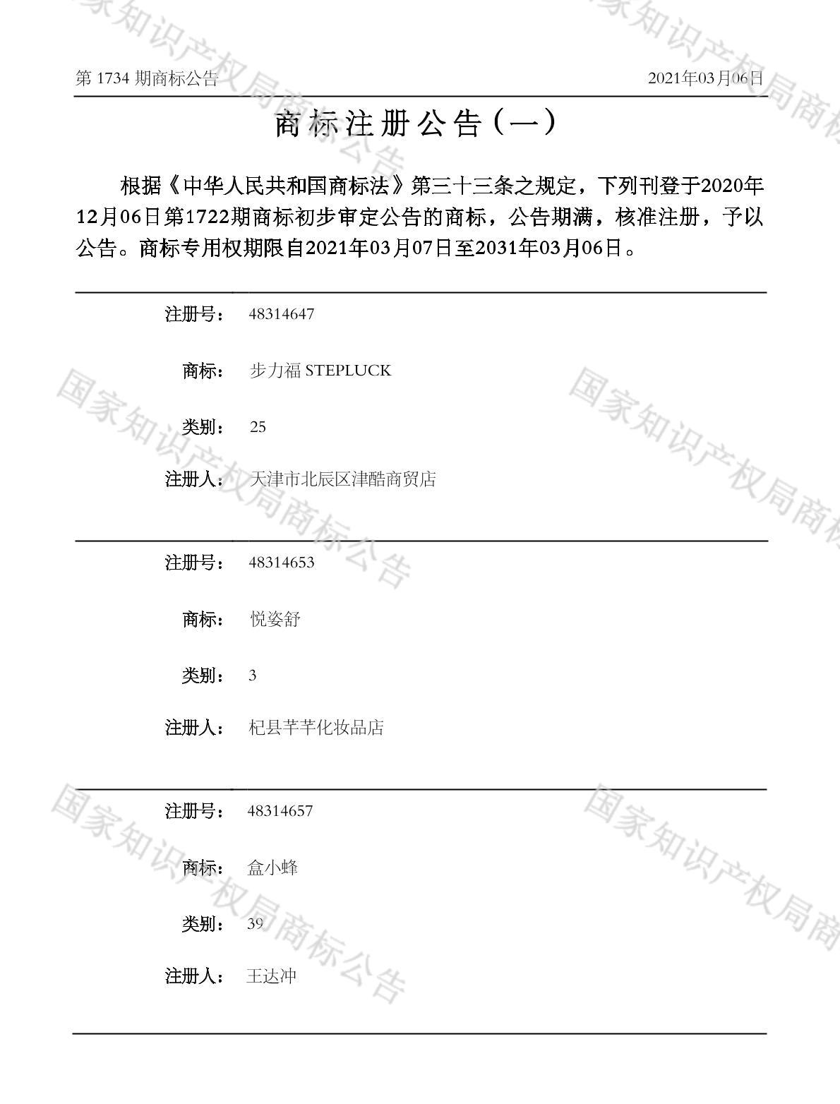 有效期限:2031-03-06 组合类型:中文注册号:48314657