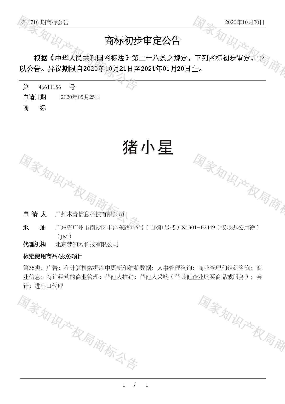 有效期限:2031-01-20 组合类型:中文注册号:46611156