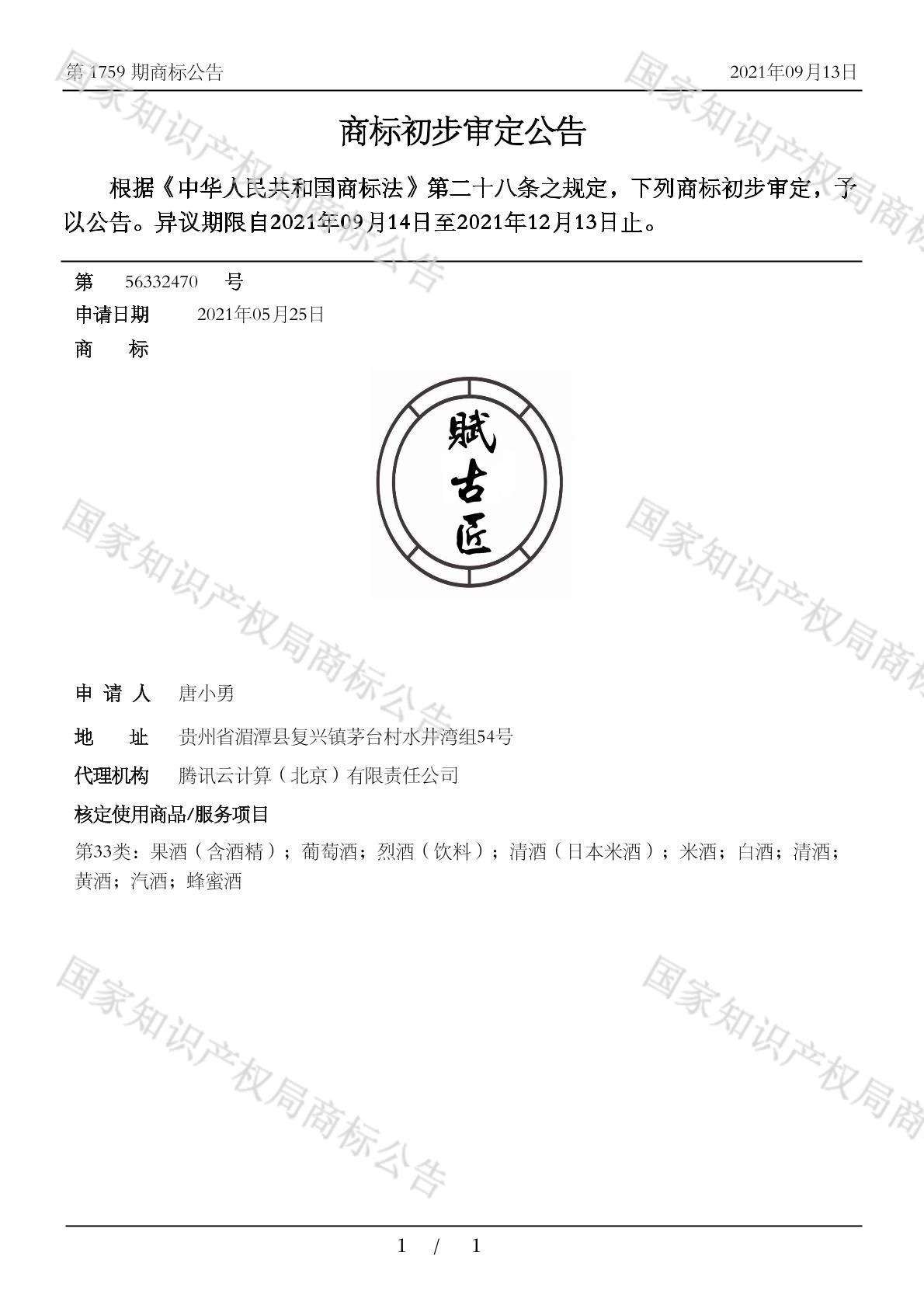有效期限:2031-12-13 组合类型:中文注册号:56332470