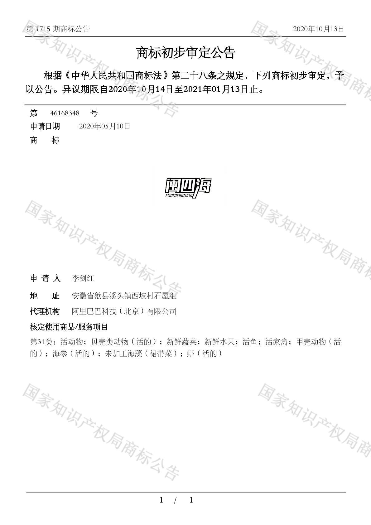初审公告日期:2020-10-13