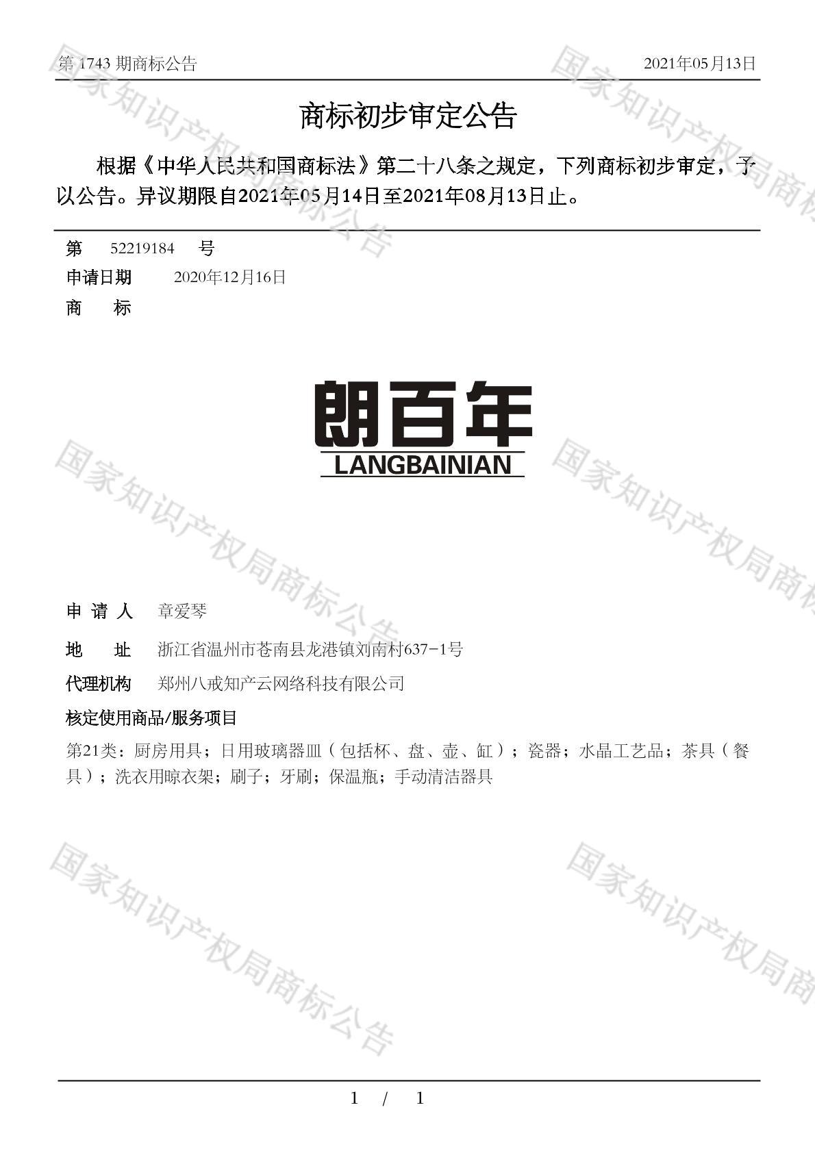 您当前位置:首页商标转让21类商标朗百年