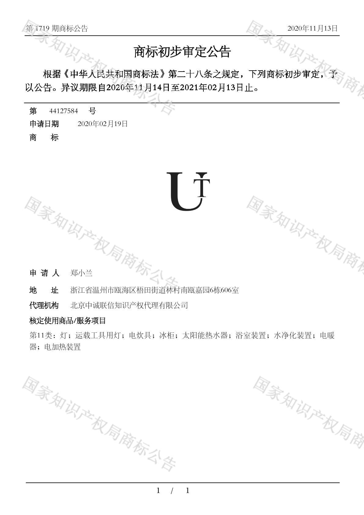 有效期限:2031-02-13 组合类型:中文注册号:44127584