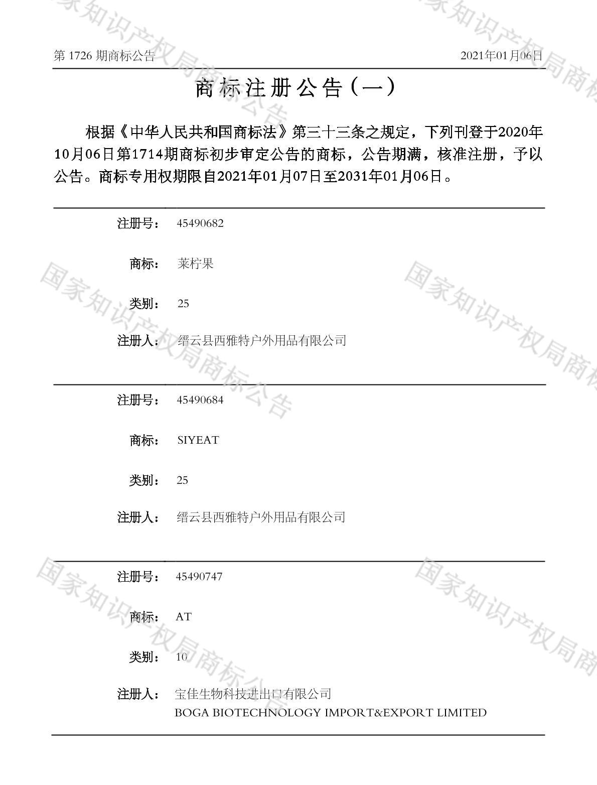 有效期限:2031-01-06 组合类型:中文注册号:45490747