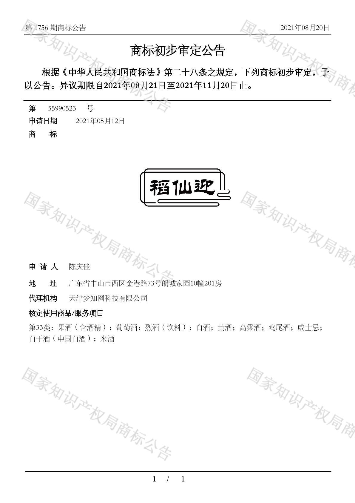 您当前位置:首页商标转让33类商标稻仙迎