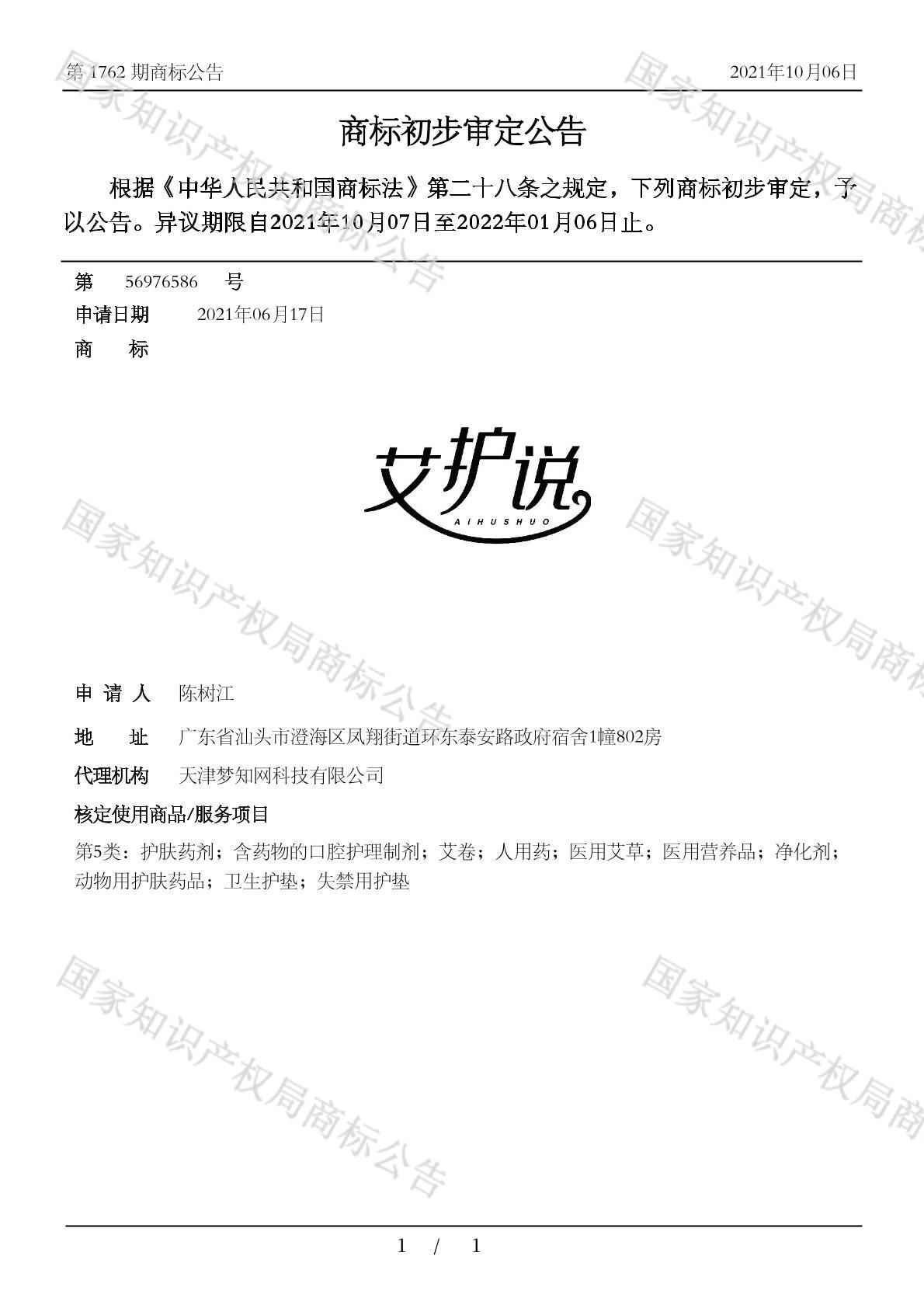 有效期限:2032-01-06 组合类型:中文注册号:56976586