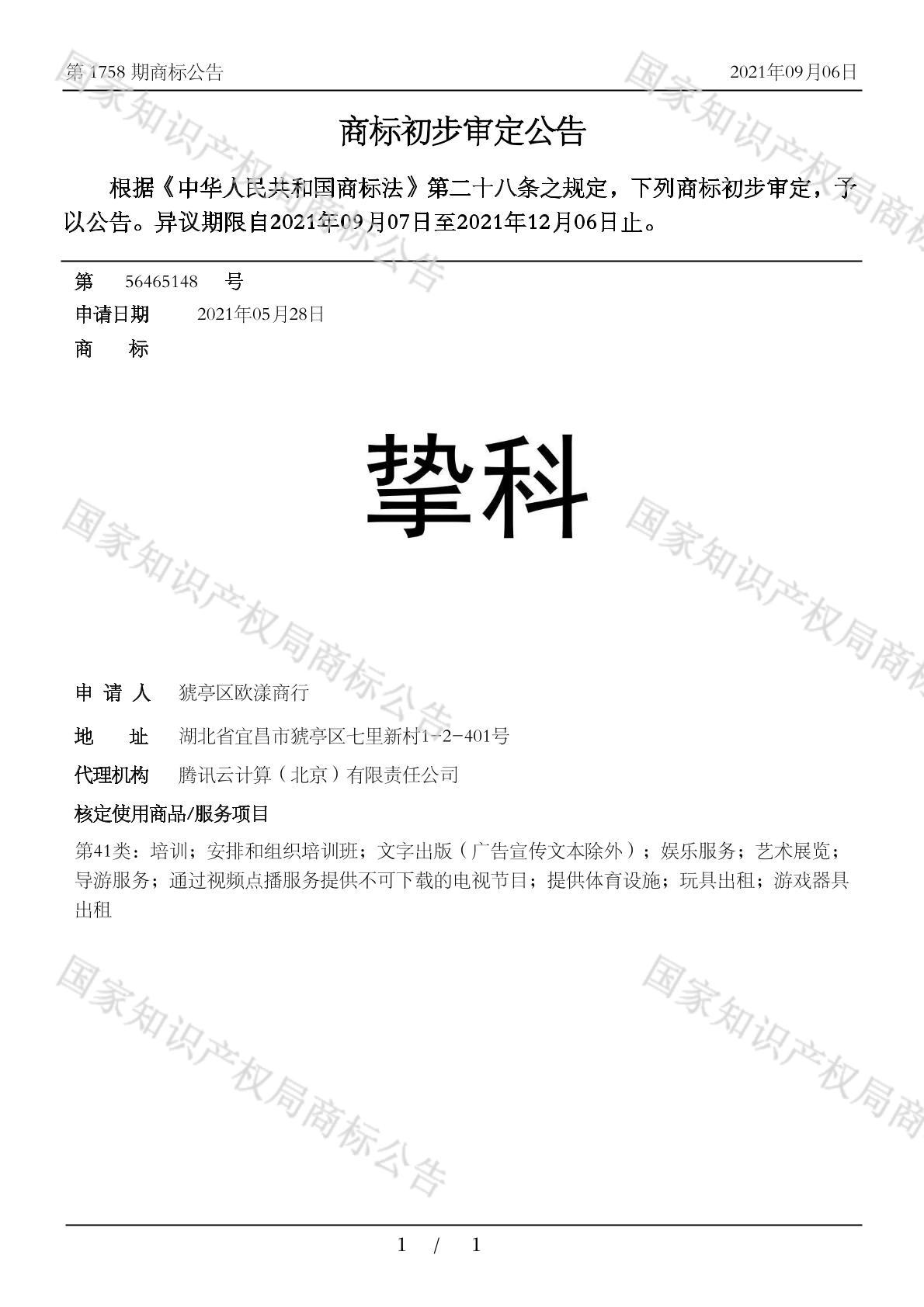 有效期限:2031-12-06 组合类型:中文注册号:56465148