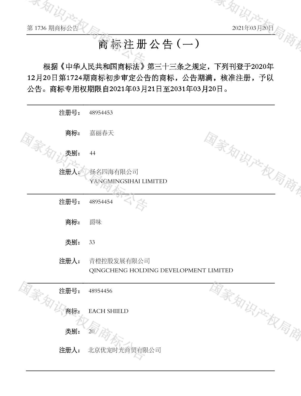 有效期限:2031-03-20 组合类型:中文注册号:48954453