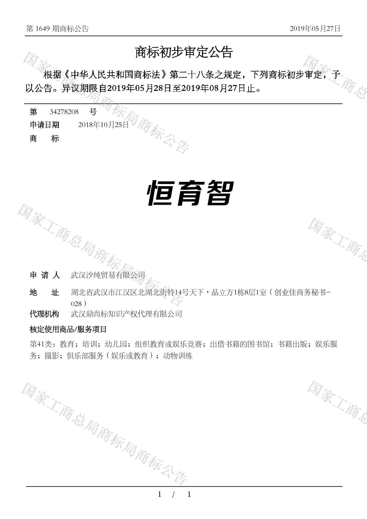 有效期限:2029-08-27 组合类型:中文注册号:34278208