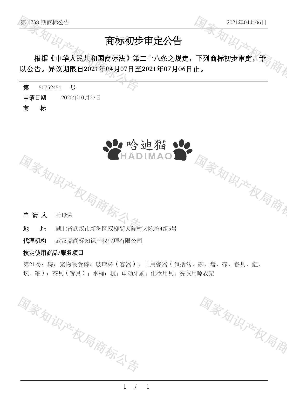有效期限:2031-07-06 组合类型:中文注册号:50752451