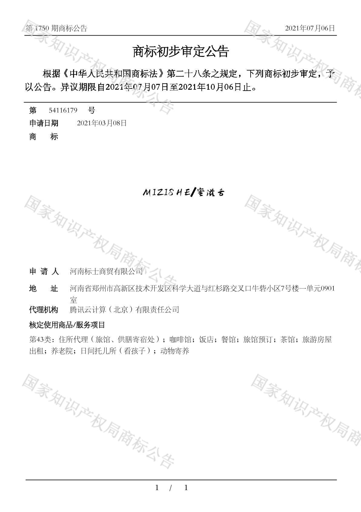 有效期限:2031-10-06 组合类型:中文注册号:54116179
