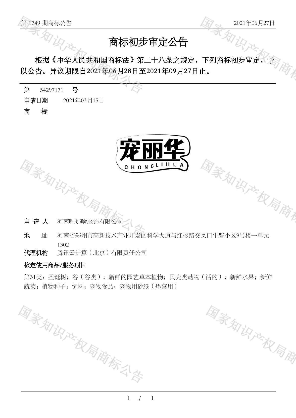 有效期限:2031-09-27 组合类型:中文注册号:54297171