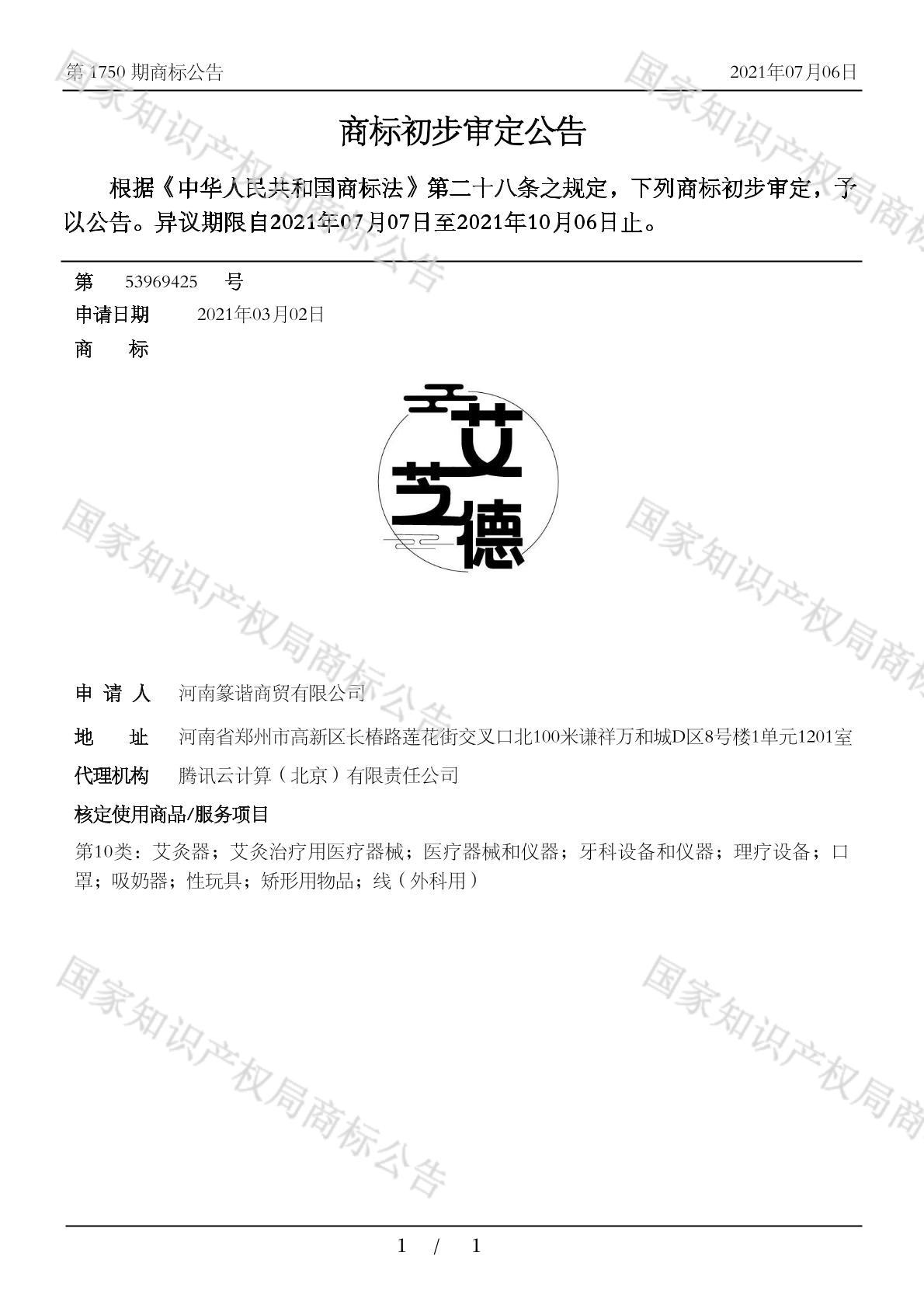有效期限:2031-10-06 组合类型:中文注册号:53969425