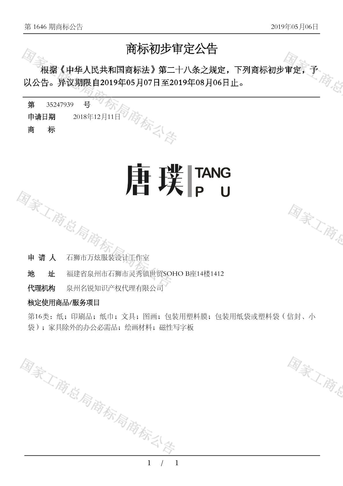 有效期限:2029-08-06 组合类型:中文注册号:35247939