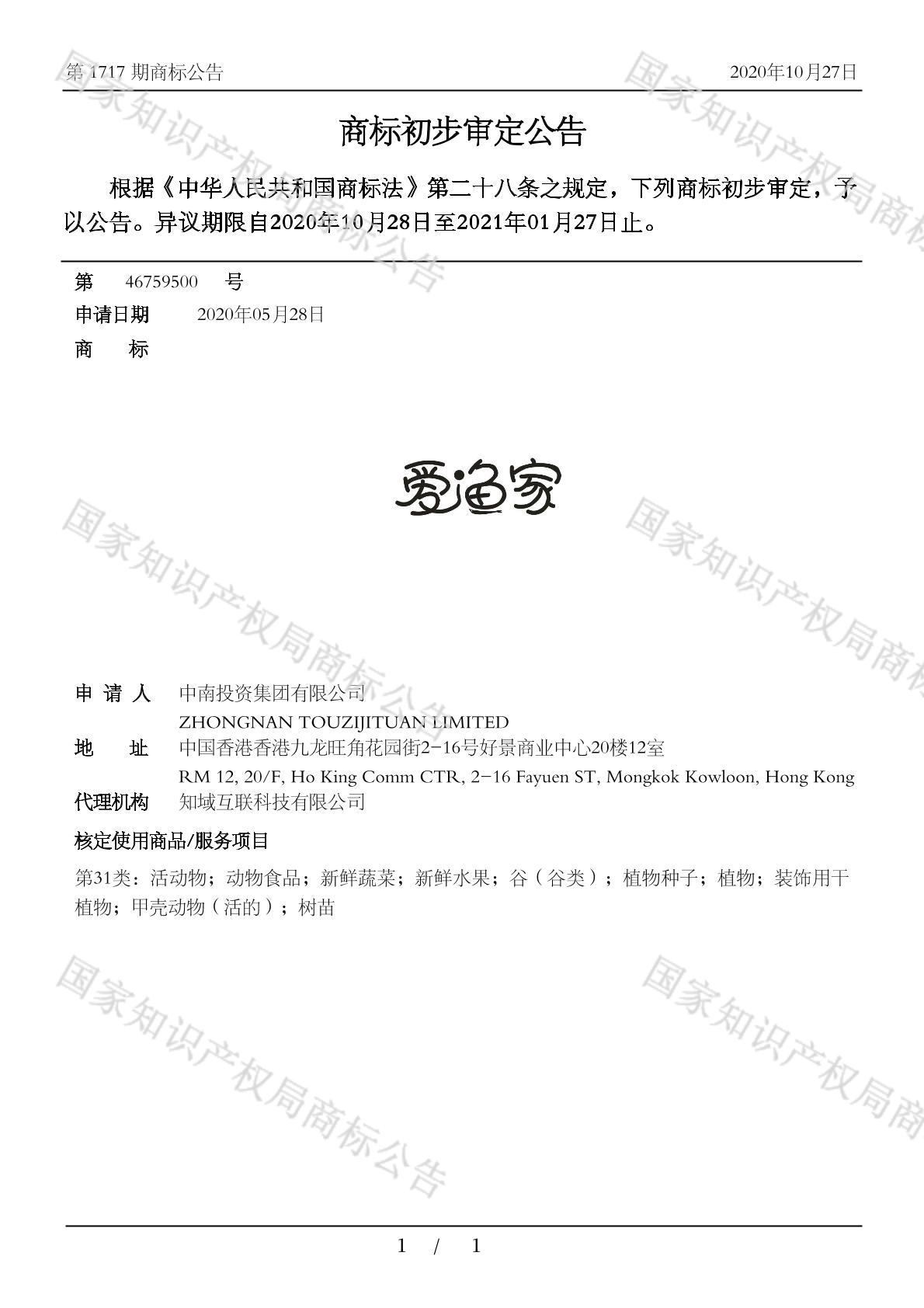 有效期限:2031-01-27 组合类型:中文注册号:46759500