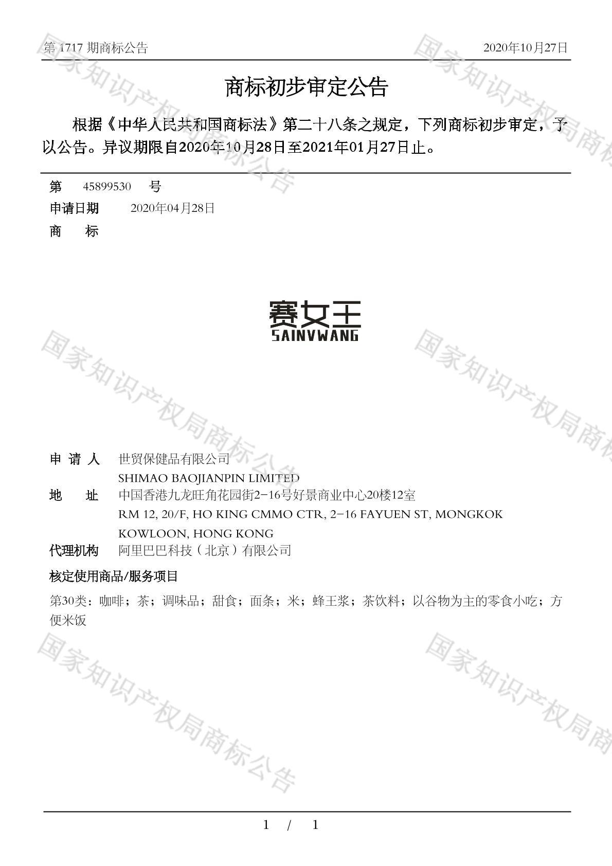 有效期限:2031-01-27 组合类型:中文注册号:45899530