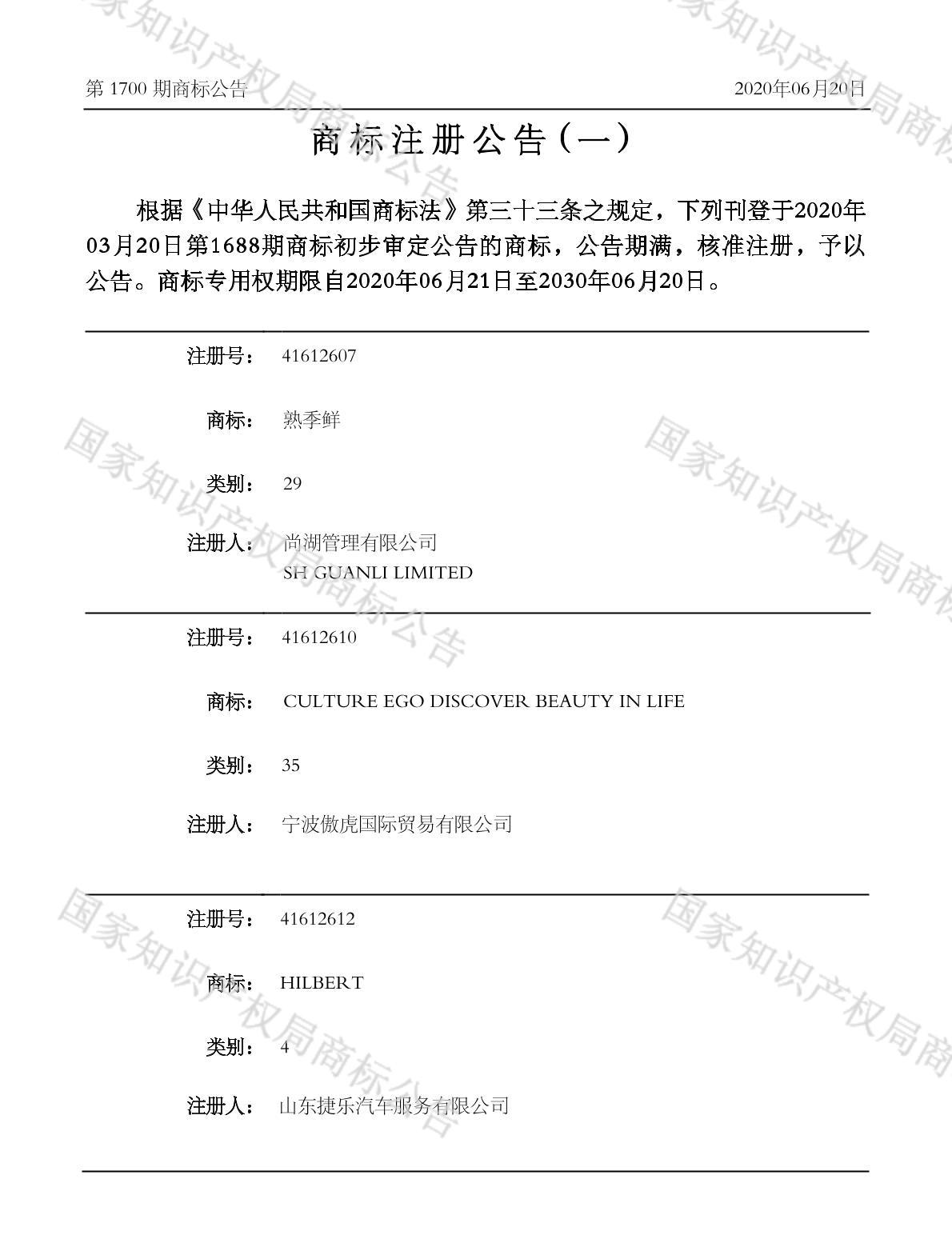 有效期限:2030-06-20 组合类型:中文注册号:41612607