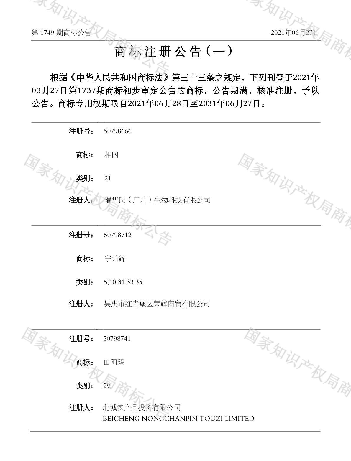 注册公告期号:1749