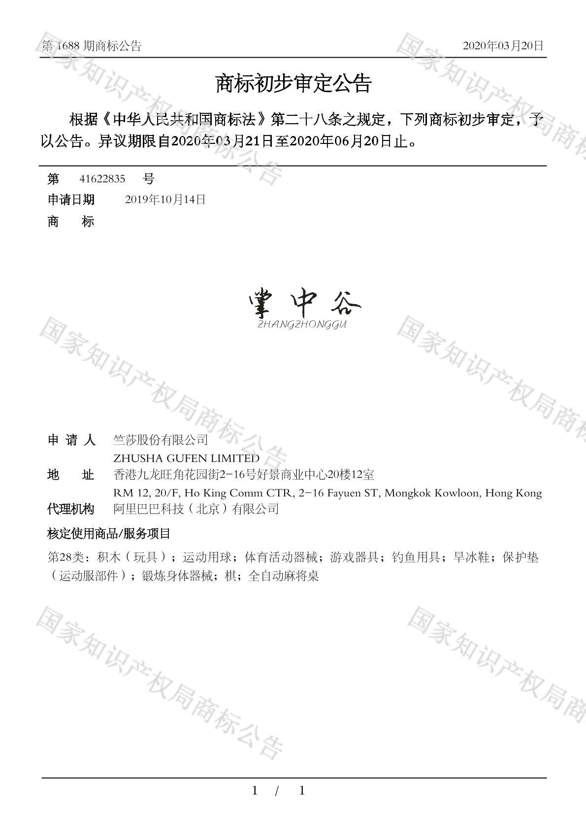 有效期限:2030-06-20 组合类型:中文注册号:41622835
