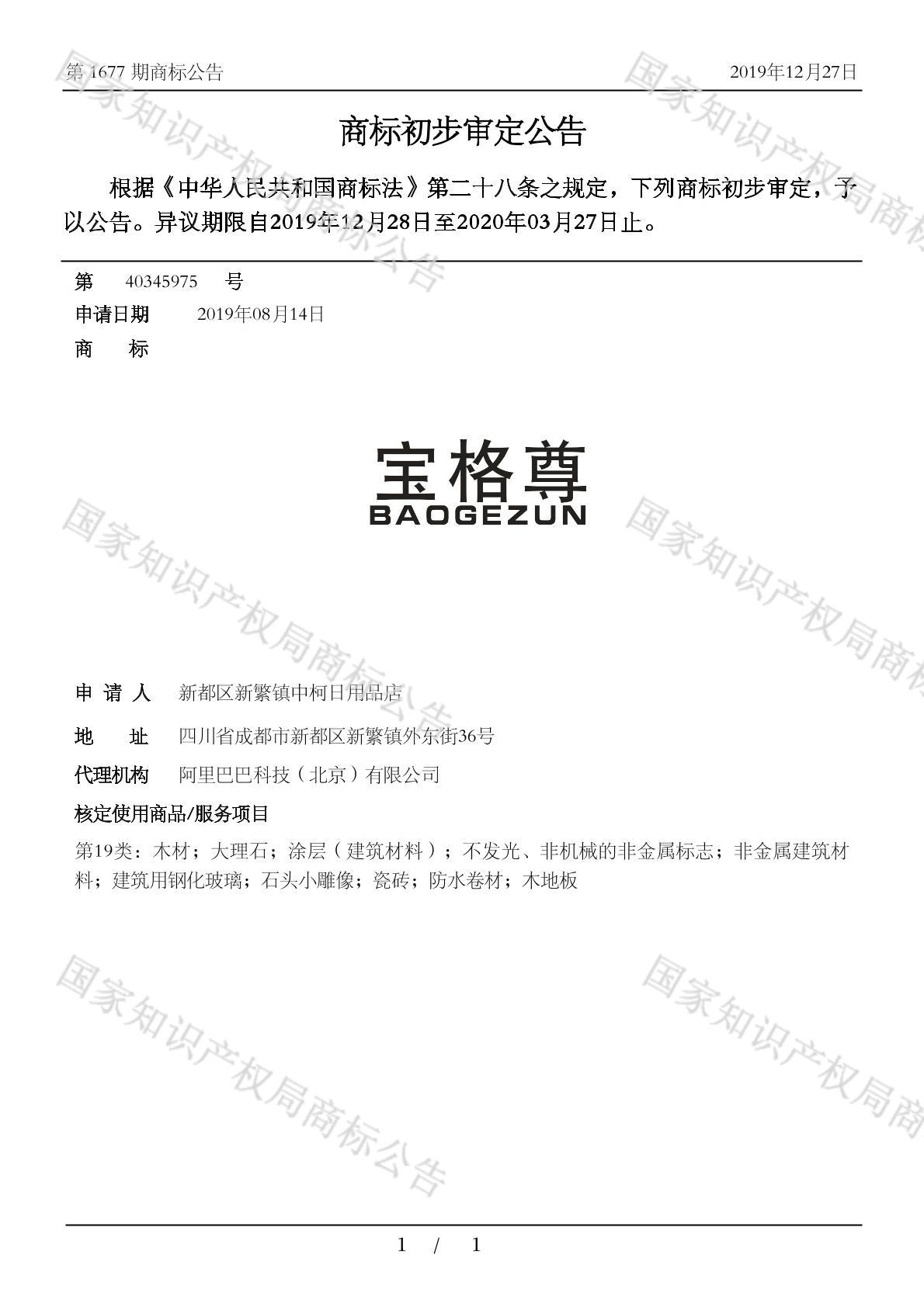 您当前位置:首页商标转让19类商标宝格尊