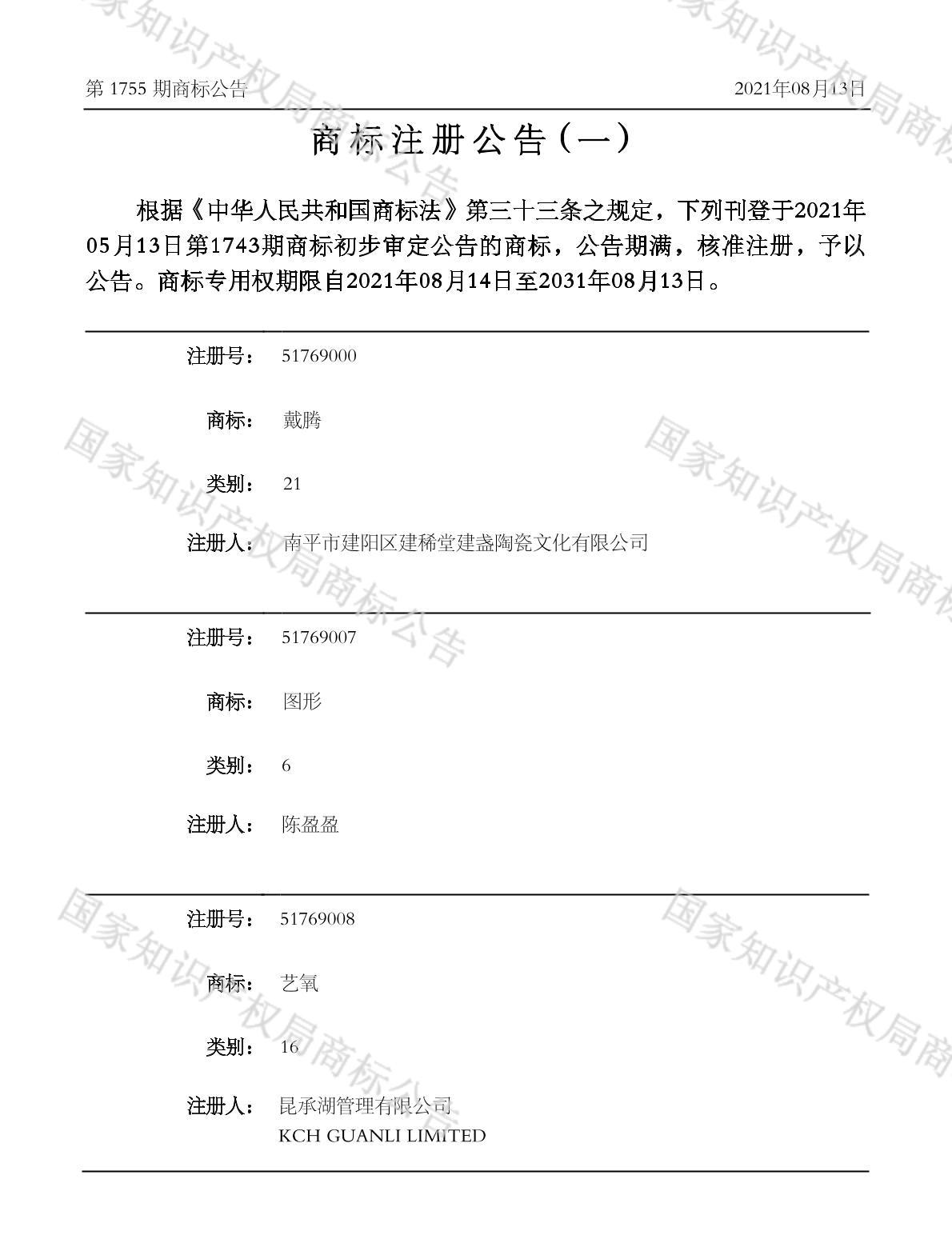 有效期限:2031-08-13 组合类型:中文注册号:51769008