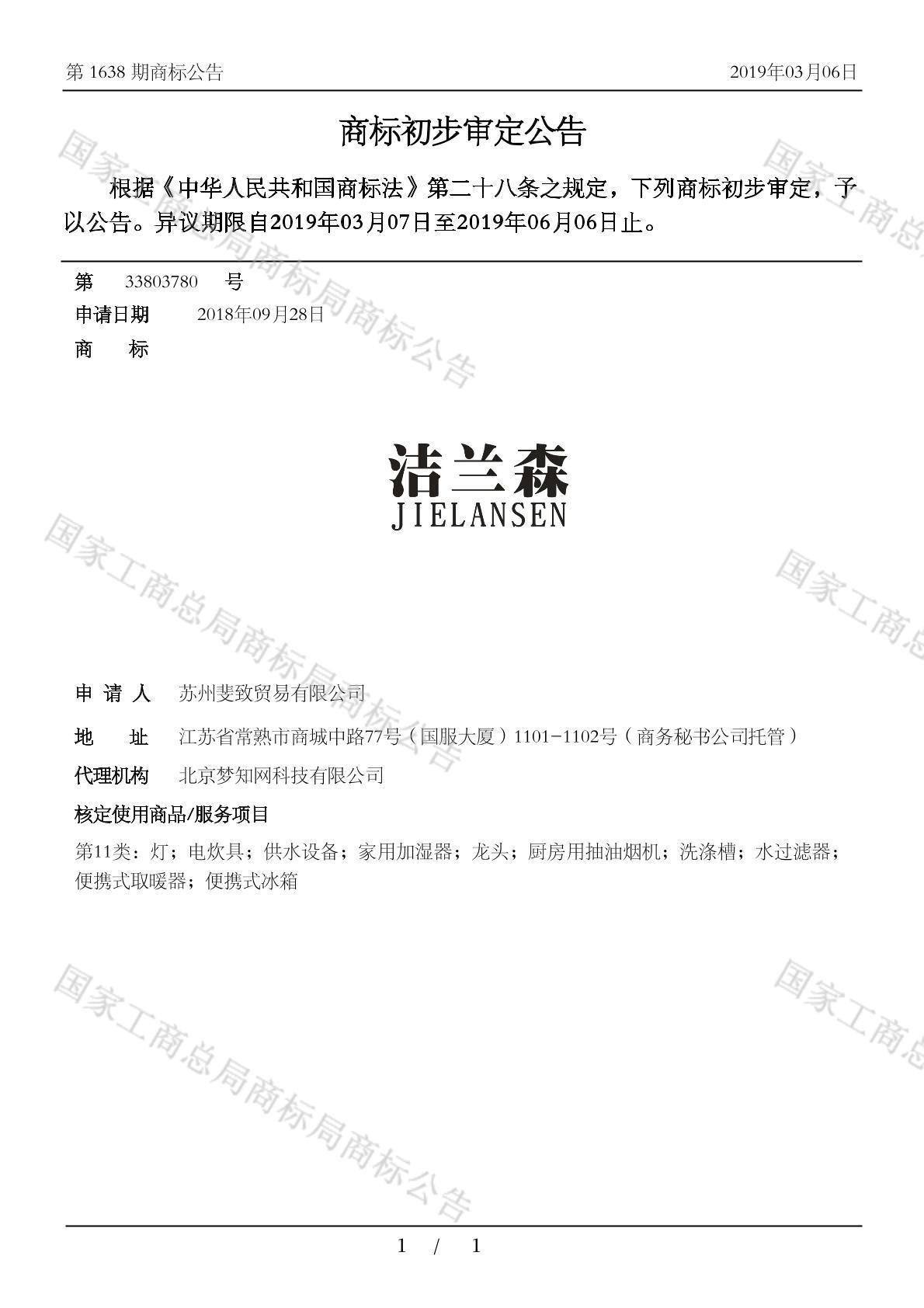 有效期限:2029-06-06 组合类型:中文注册号:33803780
