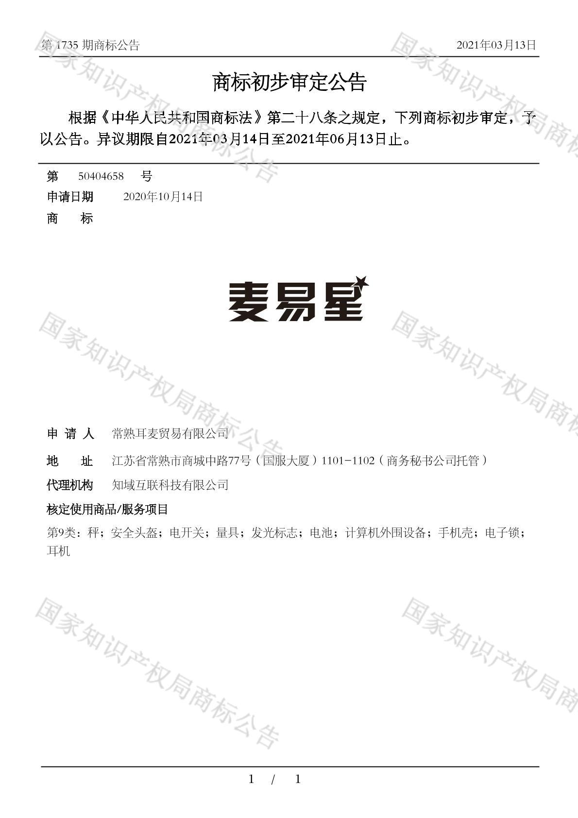 您当前位置:首页商标转让9类商标麦易星