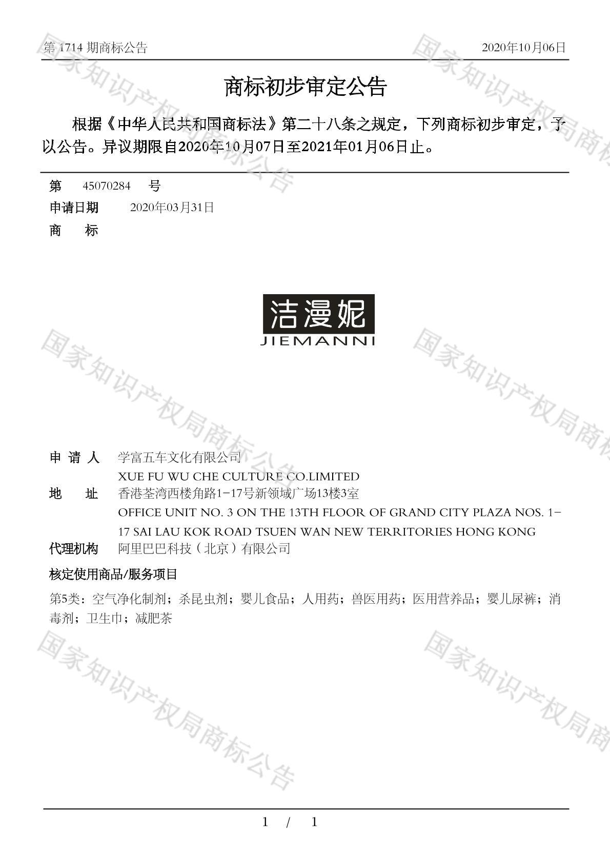 有效期限:2031-01-06 组合类型:中文注册号:45070284