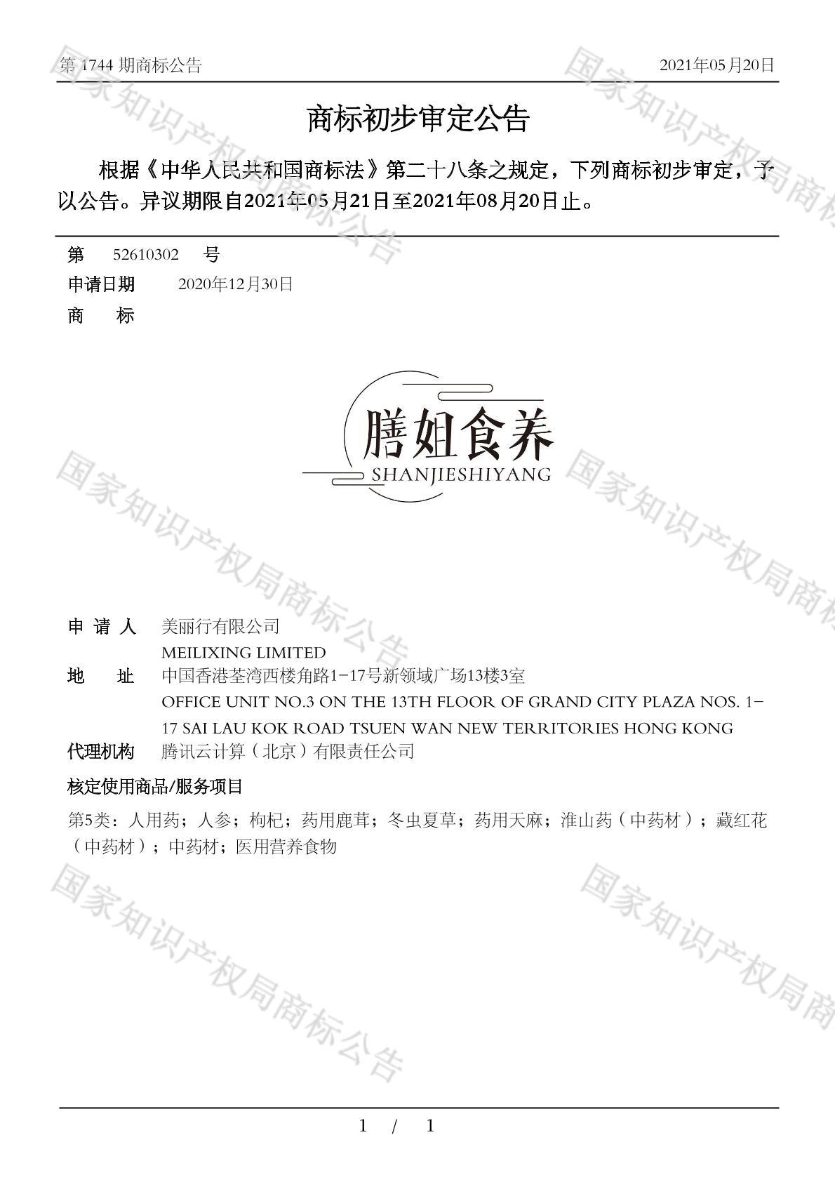 有效期限:2031-08-20 组合类型:中文注册号:52610302