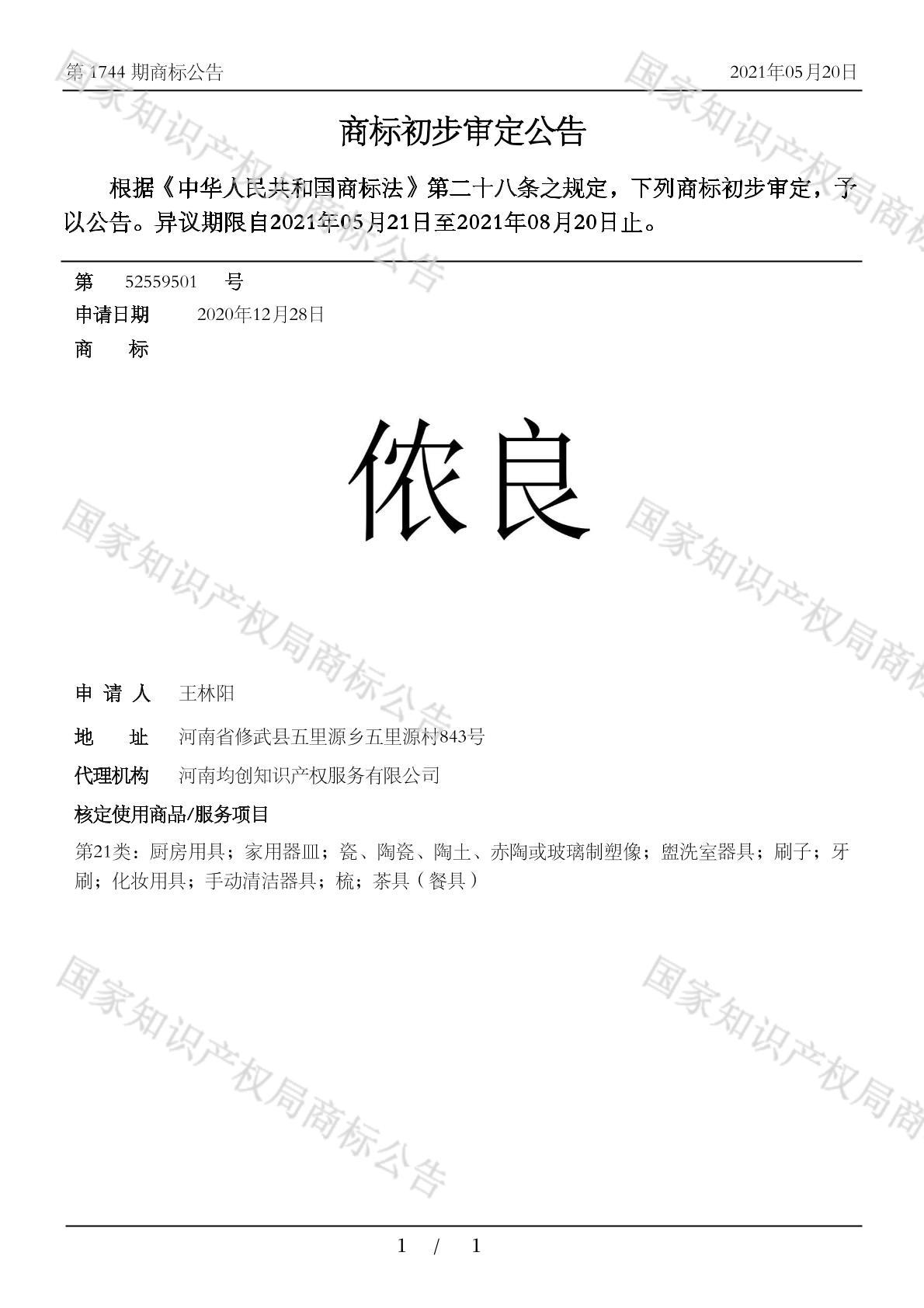 有效期限:2031-08-20 组合类型:中文注册号:52559501