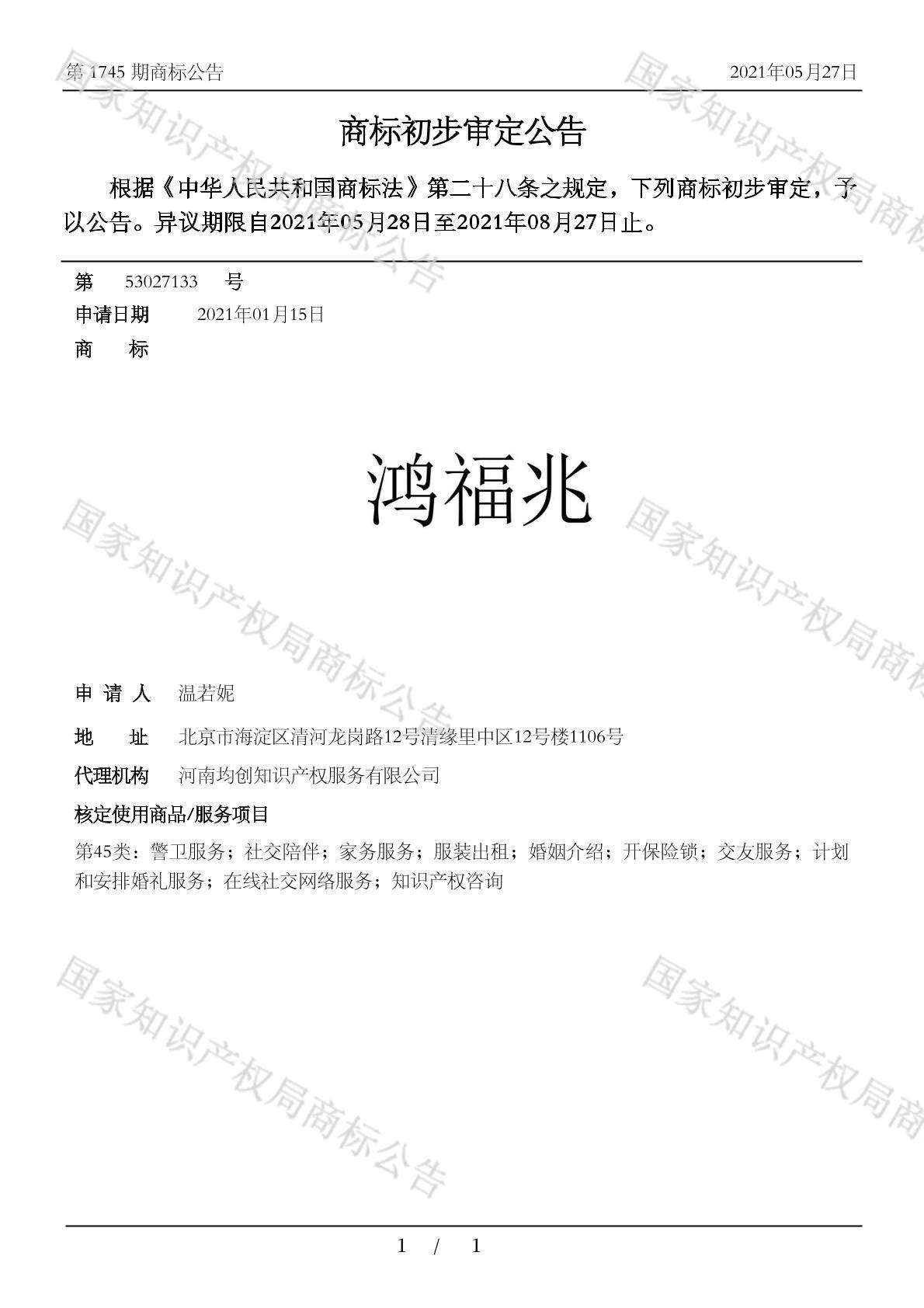您当前位置:首页商标转让45类商标鸿福兆