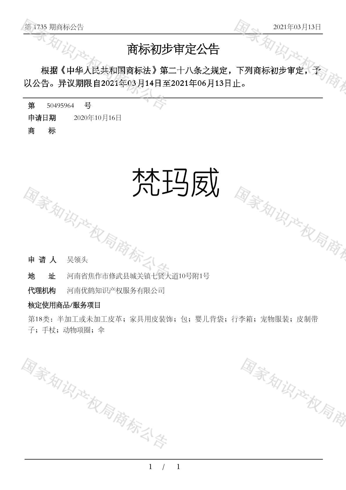 有效期限:2031-06-13 组合类型:中文注册号:50495964