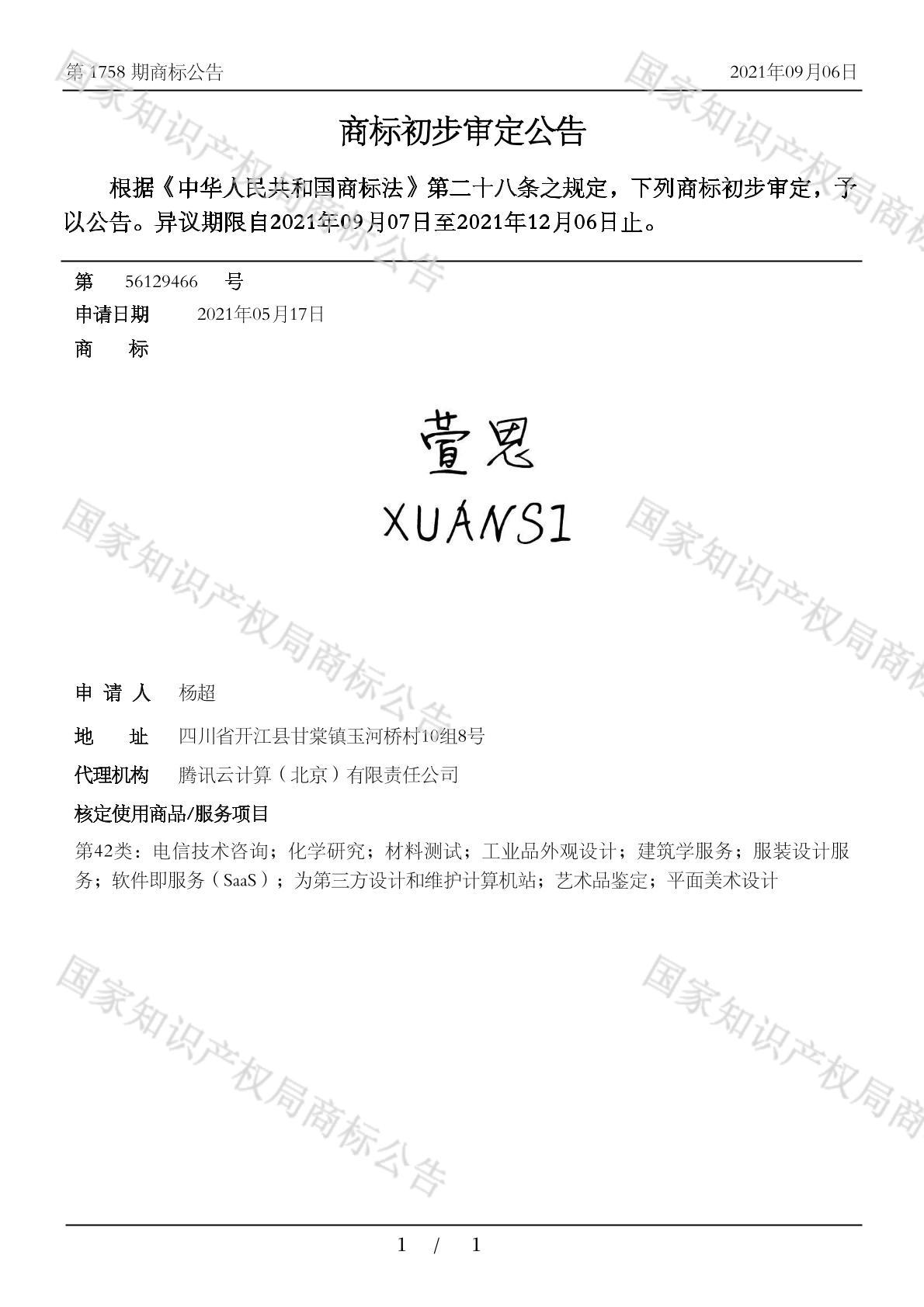 有效期限:2031-12-06 组合类型:中文注册号:56129466