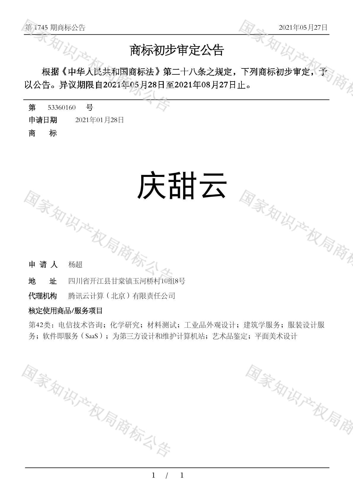 您当前位置:首页商标转让42类商标庆甜云