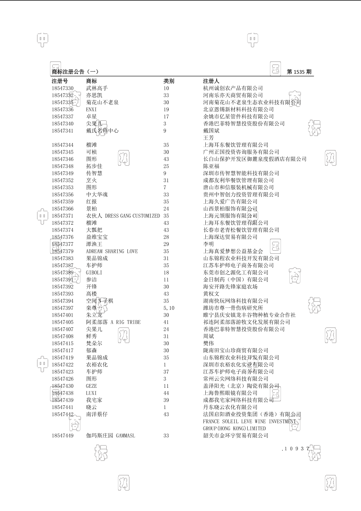 注册公告期号:1535
