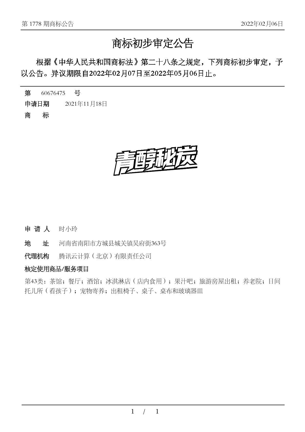 有效期限:2032-05-06 组合类型:中文注册号:60676475