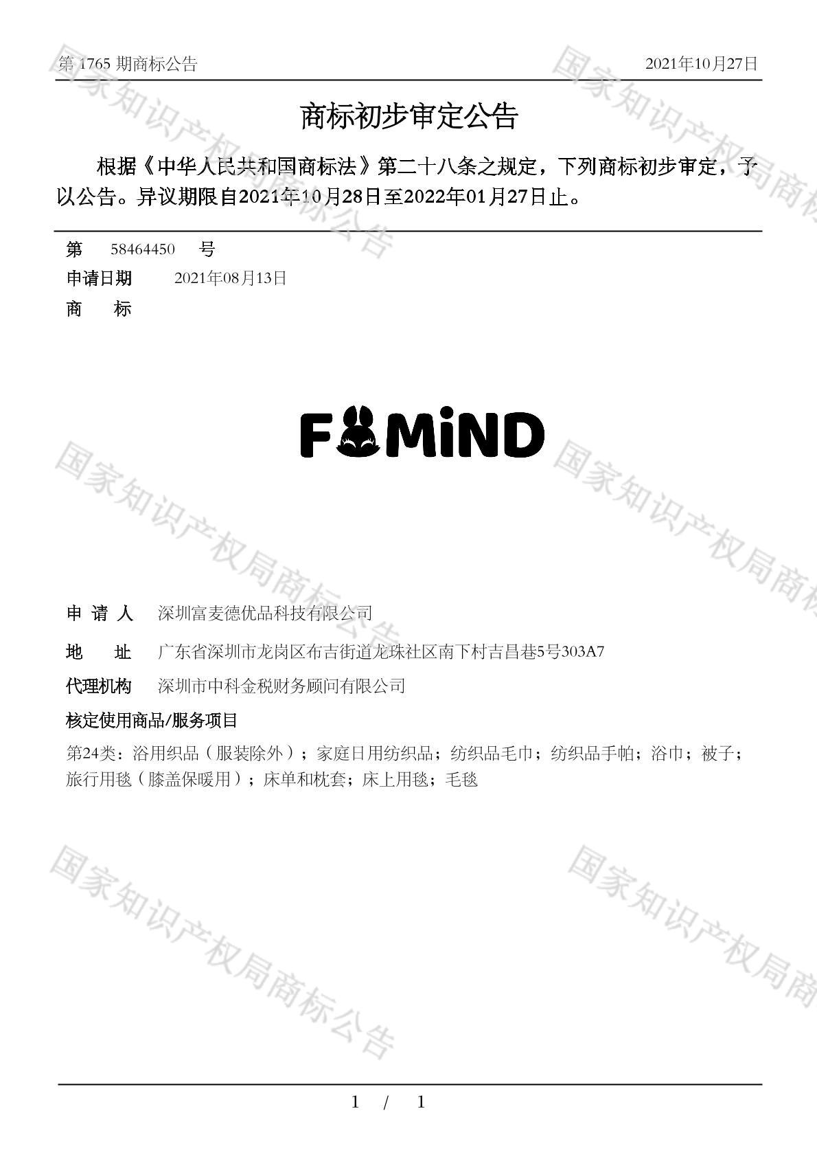 有效期限:2032-01-27 组合类型:中文注册号:58464736