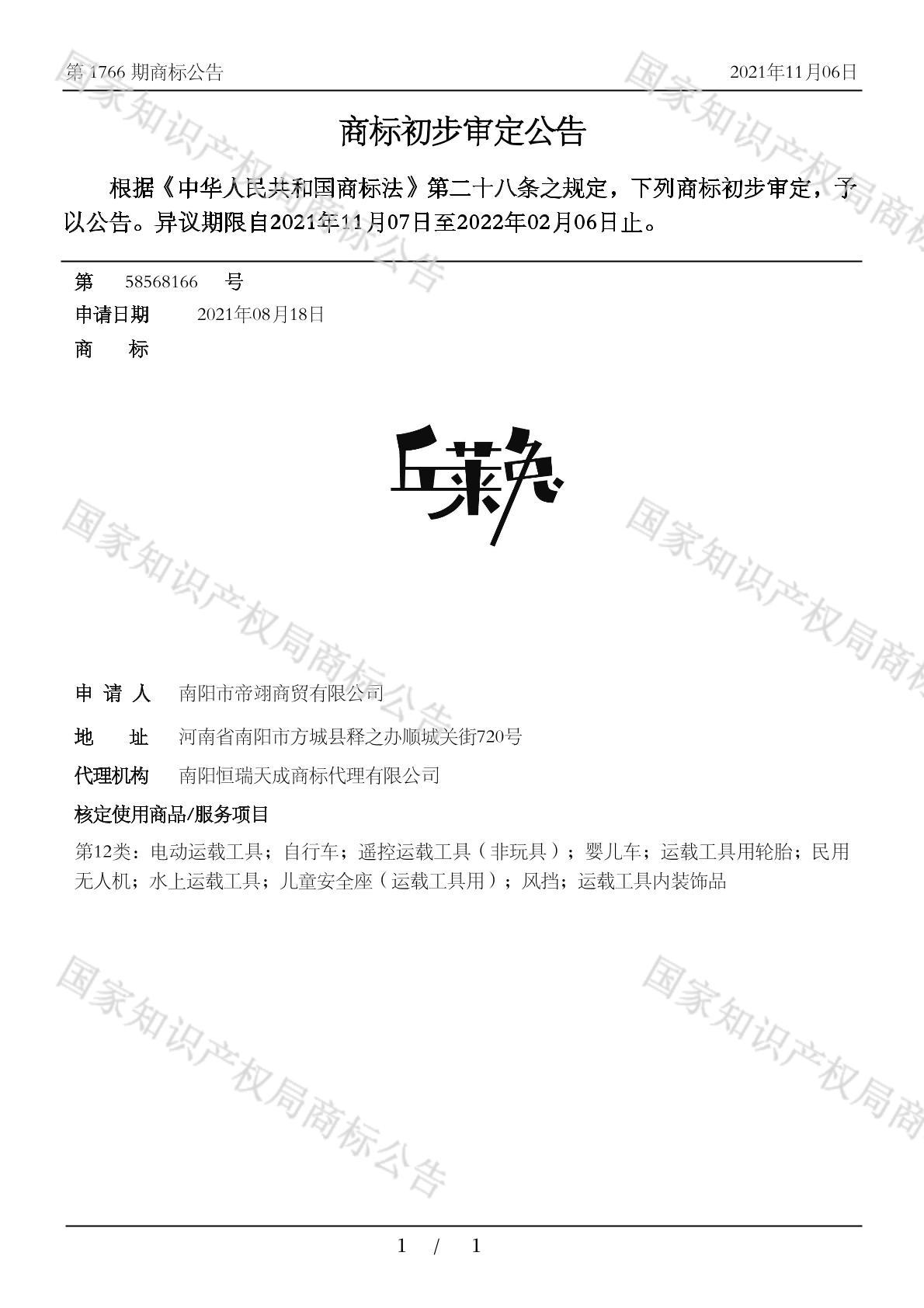 有效期限:2032-02-06 组合类型:中文注册号:58568166