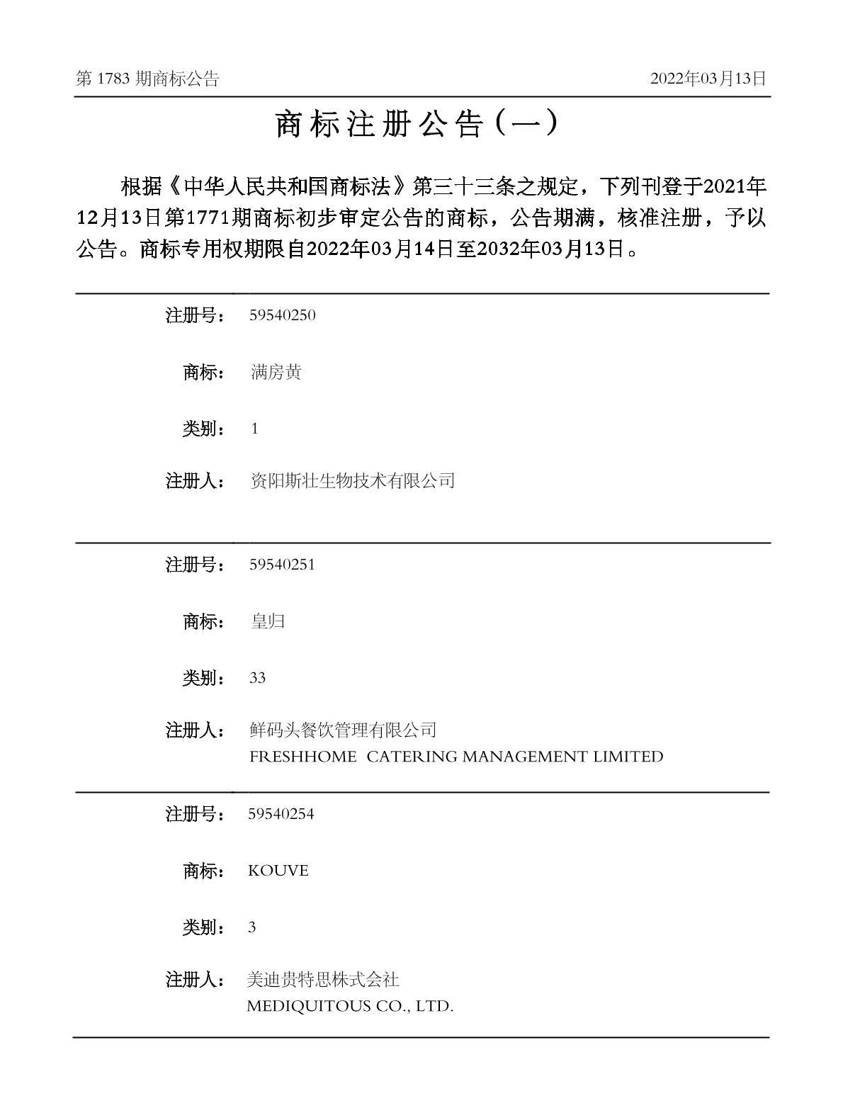 注册公告期号:1783