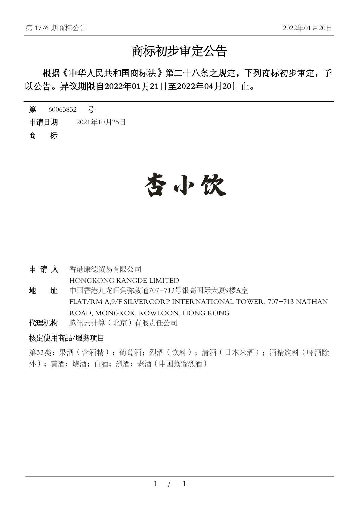 有效期限:2032-04-20 组合类型:中文注册号:60063832